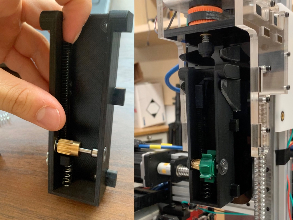 We built a powder dispensing tool that allows our machine to expand its capabilities by being able to print with solid condiments. This is a novel mechanism that was designed around constraints of the already existing food 3D printer (initially designed only for 'fluids').