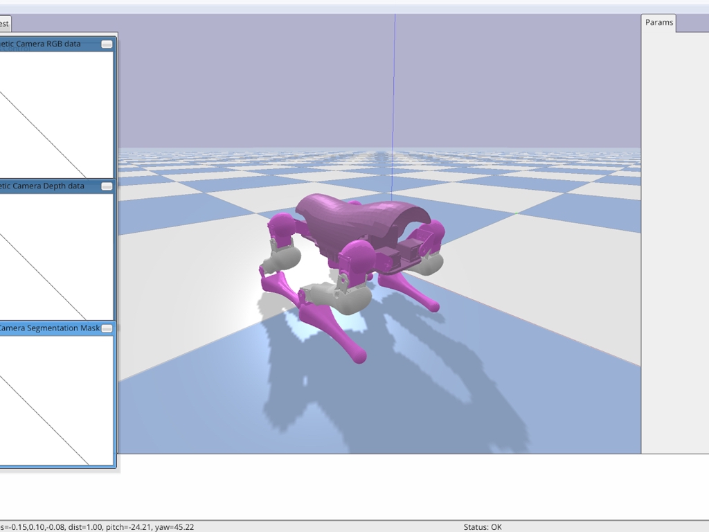 The Pink Panther is a quadruped robot whose current ability is to reliably walk on flat surfaces at ~0.33 m/s. In collaboration with CML, we are applying a learning algorithm so that the robot learns to adapt its gait to adverse conditions (ie. one leg fully shut down).