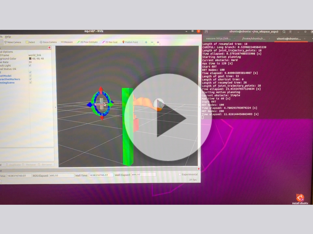 - Computed forward/inverse kinematic control Python scripts that controlled Kuka and UR5 end effectors by subscribing to joint data and publishing desired joint veolicites.
