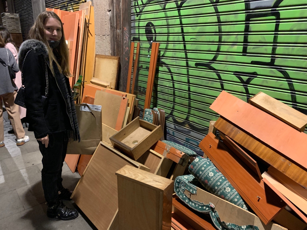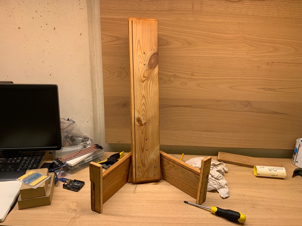 The piece is made out of a single discarded wooden drawer. I took it from a street where old furniture is left for the Barcelona City Hall to collect. I then used a hand saw and some nails & screws to put my idea together.