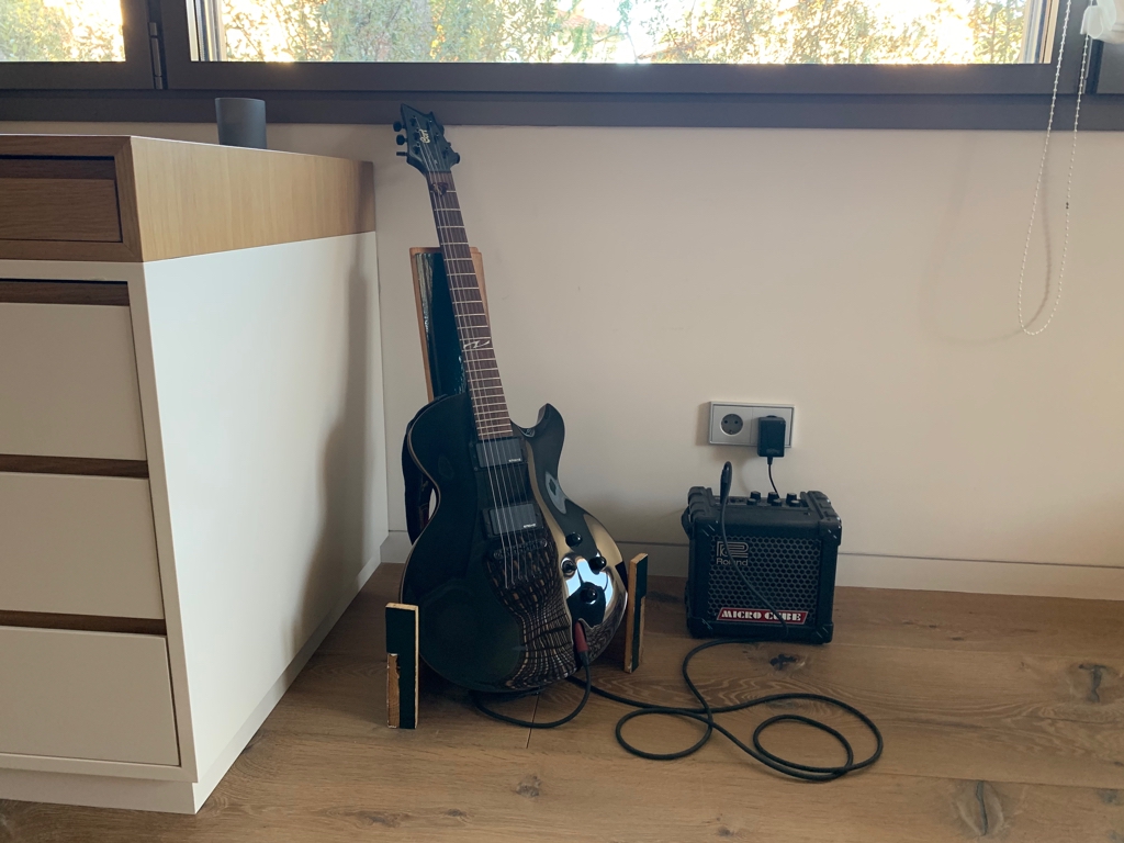 I have an electric guitar in my room that kept on falling on the ground. It made my room look disorganized and it could potentially damage the guitar itself. I didn't feel like buying a guitar stand, so I decided to make one.