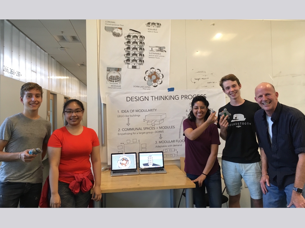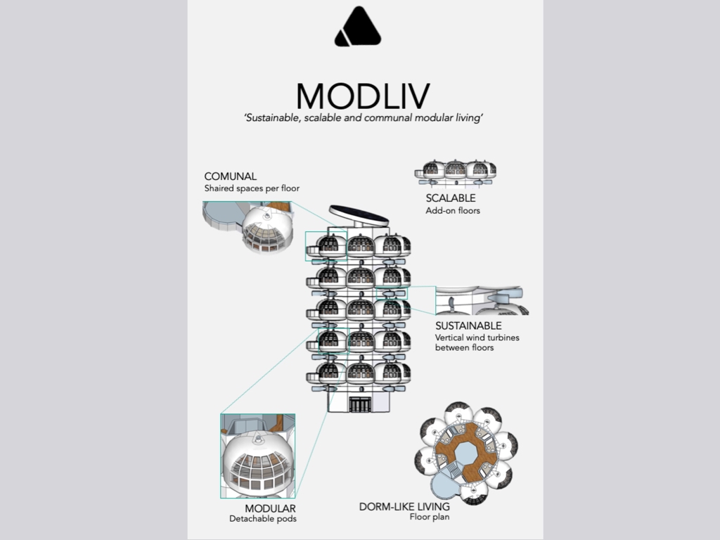 My teammate and I framed the sustainability problem of housing in cities as an issue for constructors in the ability to respond to swinging surges of demand. In order to tackle that, we created this elegant modular builiding prototype which takes inspiration from university dorms (to promote sociability) and also harnesses sustainable sources of energy, such as solar and wind.
